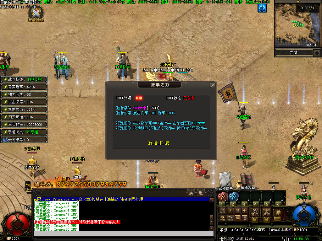完整补丁:17.97G 遥忆昔日传奇梦 剑影刀光杀气浓 兄弟情深悲欢共 夫妻恩爱生死同 杀猫逐鹿出新村 斩妖除魔入盟重 近观绿涛汇碧海 远眺青山有苍松 也曾毒蛇遭蛇吻 也曾矿工做苦工 也曾惊喜暴神兵 也曾郁闷砍蛆虫 熬到三五学终技 从此天下我英雄 初次攻城显身手 沙城遍地是蛟龙 道法施威电符猛 战士逞强火腾空 龙纹骨玉加裁决 对酒当歌铲皇宫 三更战罢有余悸 旷野处处闻哀鸿 为报友仇下祖玛 为雪妻恨清蜈蚣 哪有英雄怕诅咒 何来好汉惧名红 终日征战沙场上 怕死莫来传奇中 星辰传说 QQ群礼包:小鸭子宝宝 群体施毒术 隐身术 赞助介绍:白银赞助:属性介绍:5%鞭尸几率、2%最大攻击生命加成 黄金赞助:属性介绍:10%鞭尸几率,5%最大攻击生命加成 白金赞助:属性介绍:15%鞭尸几率,8%最大攻击生命加成 钻石赞助:属性介绍:20%鞭尸几率.11%最大攻击生命加成 王者赞助:属性介绍:25%鞭尸几率.15%最大攻击生命加成 至尊赞助:属性介绍:30%鞭尸几率.20%最大攻击生命加成 注:以上为老板玩家唯一优势、游戏所有东西需要靠怪物爆出! 系统自动激活,无需手动领取—————————————————————————————————赞·助宠物领取:有一只强大的宠物能让你在游戏里事半功倍达到相应的充值赞助,可以在我这里可以免费领取一只【祥瑞仙宠】白银赞助 领取7多祥瑞仙充 黄金赞助 领取8级祥瑞仙宠 白金赞助 领取9级祥瑞仙宠 钻石赞助 领取10级祥瑞仙宠 王者赞助 领取神级祥瑞仙宠 至尊赞助 领取魔神级祥瑞仙宠—————————————————————————————————狂暴之力:激活效果:暴击几率+10%.爆率+100% 狂暴规则:被人物杀死BUFF会消失,击杀者奖励100大米 狂暴规则:攻沙期间[区域内]不消失,被怪物杀死不消失——————————————————————————————————沙城捐献:属性:爆率100%属性:伤害10%属性:吸血10%激活:自动回收功能——————————————————————————————————福利【主打一个良心】:免费领取狮子吼[全屏引怪]效果:嘲讽引怪范围20x20.自带红绿毒. 主要挂机操作时使用此技能[可内挂设置自动练功或攻击魔法中释放]免费领取虎王啸[全屏吸怪]效果:全屏吸怪范围65x65.自带红绿毒. 主要手动操作时使用此技能[超爽刷怪神级!——————————————————————————————————职业介绍:共五大职业,剑皇,剑圣,召唤师,盜贼,荡魔师剑皇技能介绍:天生蛮力:神力倍攻10%烈火精通:伤害提高20%幽灵盾:为附近5x5友军提供10%最大攻击力.持续5小时,每次释放需要强者证明x20开天精通:伤害提高20%逐日精通:伤害提高20%高级剑术:最终增伤10%剑皇奥义:攻击时召唤一把巨剑,对单个目标造成当前生命-6%伤害,CD20秒,对怪物人物都有效剑圣技能介绍:快速疗伤:每秒恢复最大生命值1%半月精通:伤害提高20%神圣战甲术:为附近5x5友军提供10%最大攻击力.持续5小时,每次释放需要强者证明x20刺杀精通:伤害提高20%护体神盾:受到攻击5的几率触发神盾护体,无视此次伤害无极剑道:真实伤害提高50%剑圣奥义:攻击速度5% 兵且攻击速度突破上限至200%召唤师技能介绍:兽王契约:宠物与兽王立下契约,可与宠物通灵。 兽王:宠物普通攻击变成群攻.攻击范围提升至1×1,[注:只计算宠物攻击力加成]野兽之心:宠物攻击速度10%神兽降临:宠物伤害10% 灵兽回响:宠物所有群攻技能范围增加1X1爆裂一击:宠物攻击10%造成暴击【双倍伤害】协同作战:宠物在场时,人物对怪伤害提高10%血脉觉醒:宠物普通攻击变成群体攻击范围提升至2X2,宠物攻击20%,宠物生命20%盜贼技能介绍:妙手空空:杀死高于自身血量怪物有几率获得1-500天地结晶[并额外获得无尽塔层数+100的天地结晶]探嚢取物:杀死高于自身血量怪物有几率获得[无尽塔层数x1000]的铜币盗亦有道:击杀5大陆怪物到达1000必爆本大陆回收件[最多触发10次]神偷妙取:击杀6大陆怪物到达3000必爆本大陆回收件[最多触发5次]巧夺天工:击杀7大陆怪物到达5000必爆本大陆回收件[最多触发3次]偷天换日:击杀8大陆怪物到达8000必爆本大陆回收件[最多触发1次]盜贼天赋:真实爆率30%荡魔师技能介绍:荡魔之心:暴击伤害10%圣光血统:最大生命3% 固定生命+3888万正义怒吼:真实伤害+688W毁灭强击:最大攻击3% 固定攻击3万死亡缠绕:对怪伤害+5%灵魂破碎:对怪斩杀+1%剑刃风暴:攻击怪物时释放彻地钉技能,[cD15秒]任意两个职业技能全部领悟完成后,自动获得称号”圣皇”战士 全部五个职业技能全部领悟完成后,自动获得称号”先天圣体*——————————————————————————————————江湖称号:玩家可在这里把称号升级到星辰主宰者,攻击伤害100%爆率提升1.40对怪真实伤害60万时装系统:玩家可在这里把时装升级到蛮荒战神级别,暴击几率20%攻击伤害20%忽视防御20%套装属性:血量增幅30% 攻击增幅30%万剑归宗:对人物3X3范围的怪物造成战斗力x12倍的伤害,CD12秒军鼓系统:玩家可在这里把军鼓升级成神海军鼓,固定属性:攻击力60%追加属性:生命值60%重生:死亡时立即回复100%的血量【CD60:秒】远古神技:魔法盾:免费合成,需技能残页1-9号十步一杀:免费合成,需技能残页1-9号禁忌心法:免费合成,需技能残页1-9号抱月剑法:免费合成,需技能残页1-9号冰霜群雨